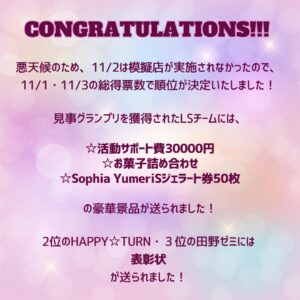 第60回摂津祭模擬店No.1を決めるMG-1グランプリの結果です✨