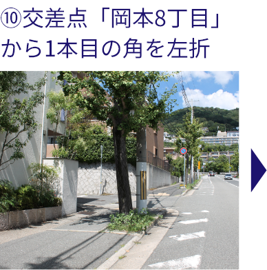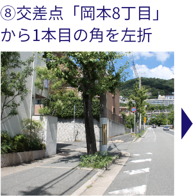 阪急「岡本」駅より徒歩約10分、JR「摂津本山」駅より徒歩約12分